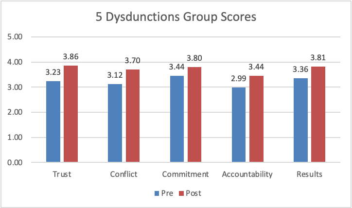 Pre-Post scores of the Team on 5 Dysfunctions assessment