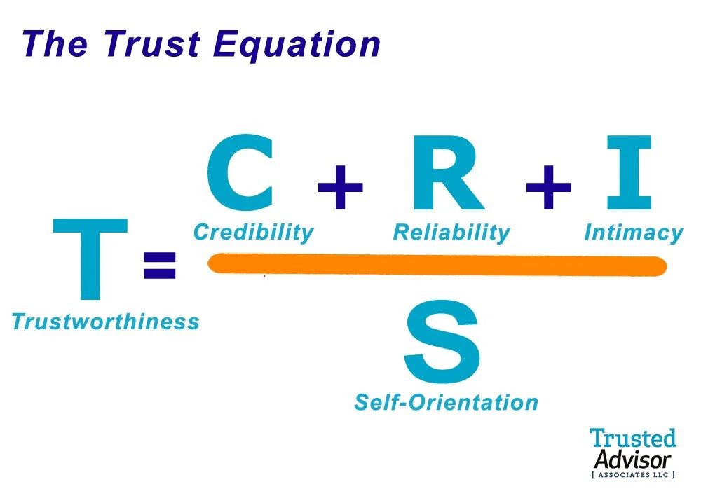 Trustworthiness = (Credibility × Reliability × Intimacy) ÷ Self-Orientation