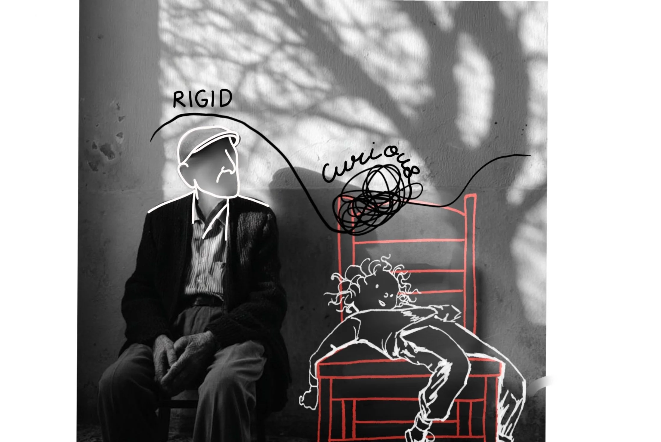 Think of a child. They plonk themselves on any surface without worrying about stains, hair or impressions. They look at the world in the most unassuming way, curious, like a beginner.