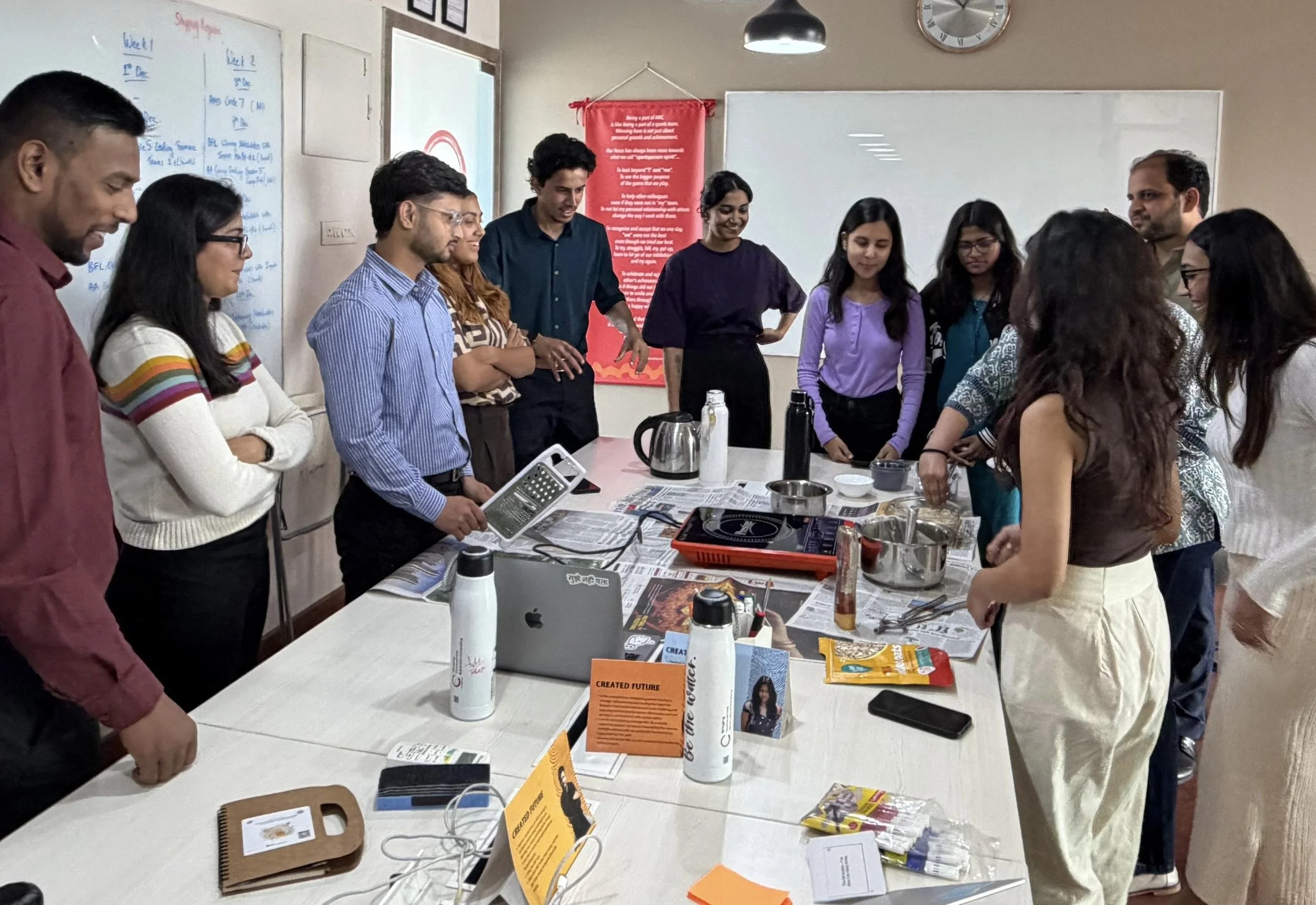 Context: Every once in a while, just before lunch, we experiment with creating tiny moments where we come together to pause and reflect. This could be in the form of a mini-workshop, a teach back or even an announcement.
