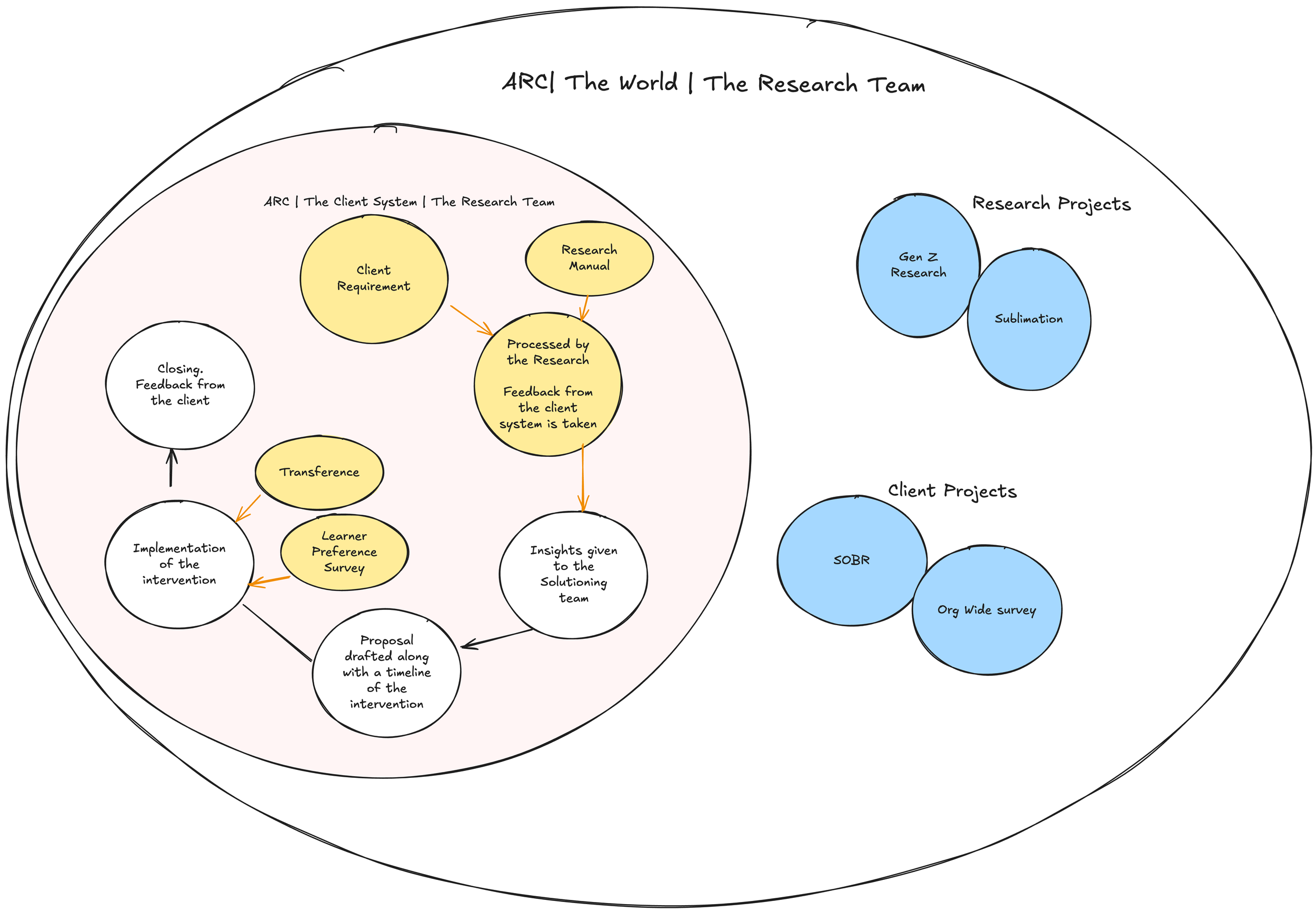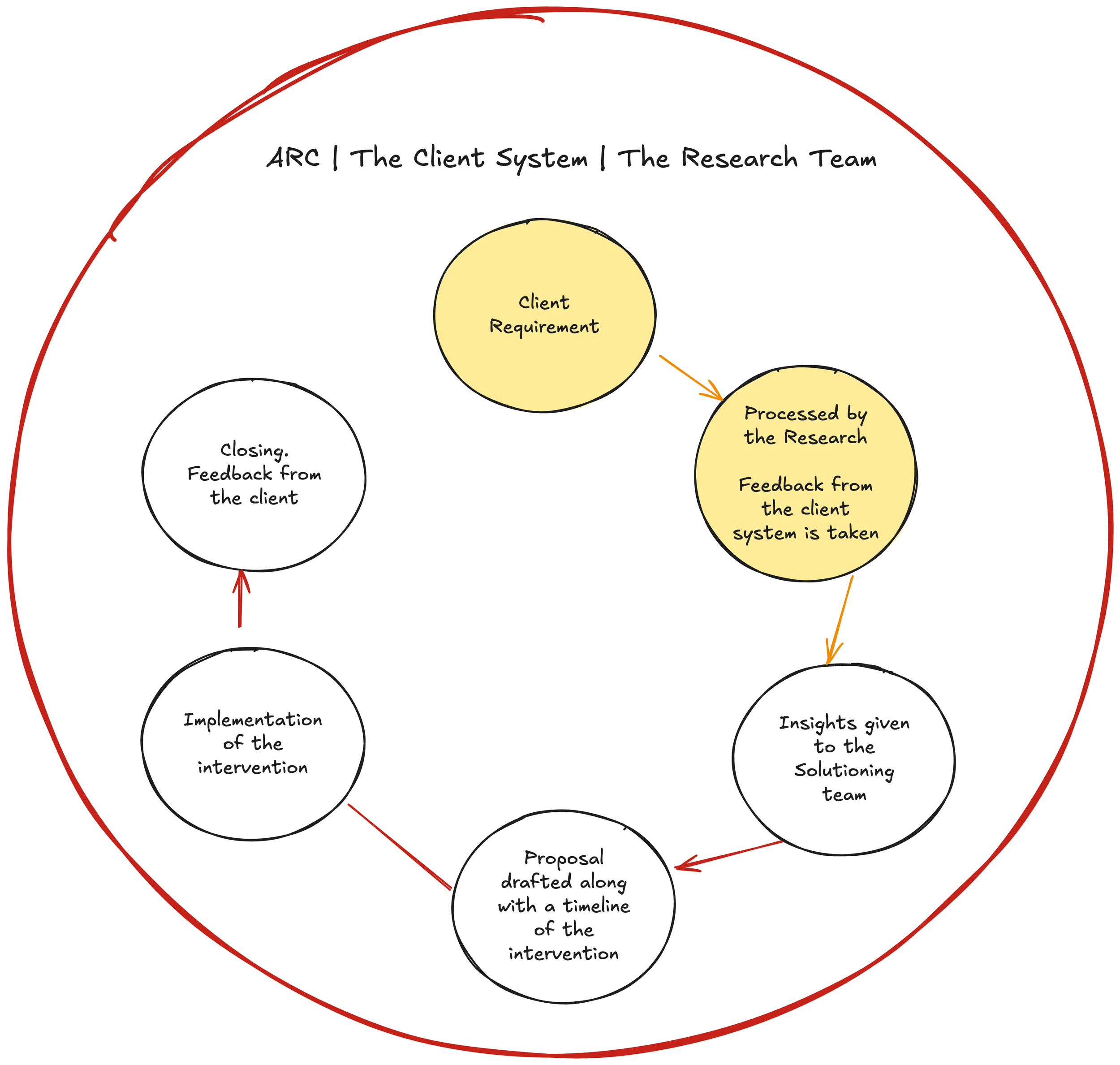 Standard PPT decks. Rehearsed sessions. Agreed on workshops that were scheduled just the night before. It worked flawlessly. This system worked for ARC until the client stakeholders weren't concerned about the business impact our created. But the fact was that not all behavioural problems could be solved through a standardised deck and rehearsed sessions. With time, reliability was bound to drop.